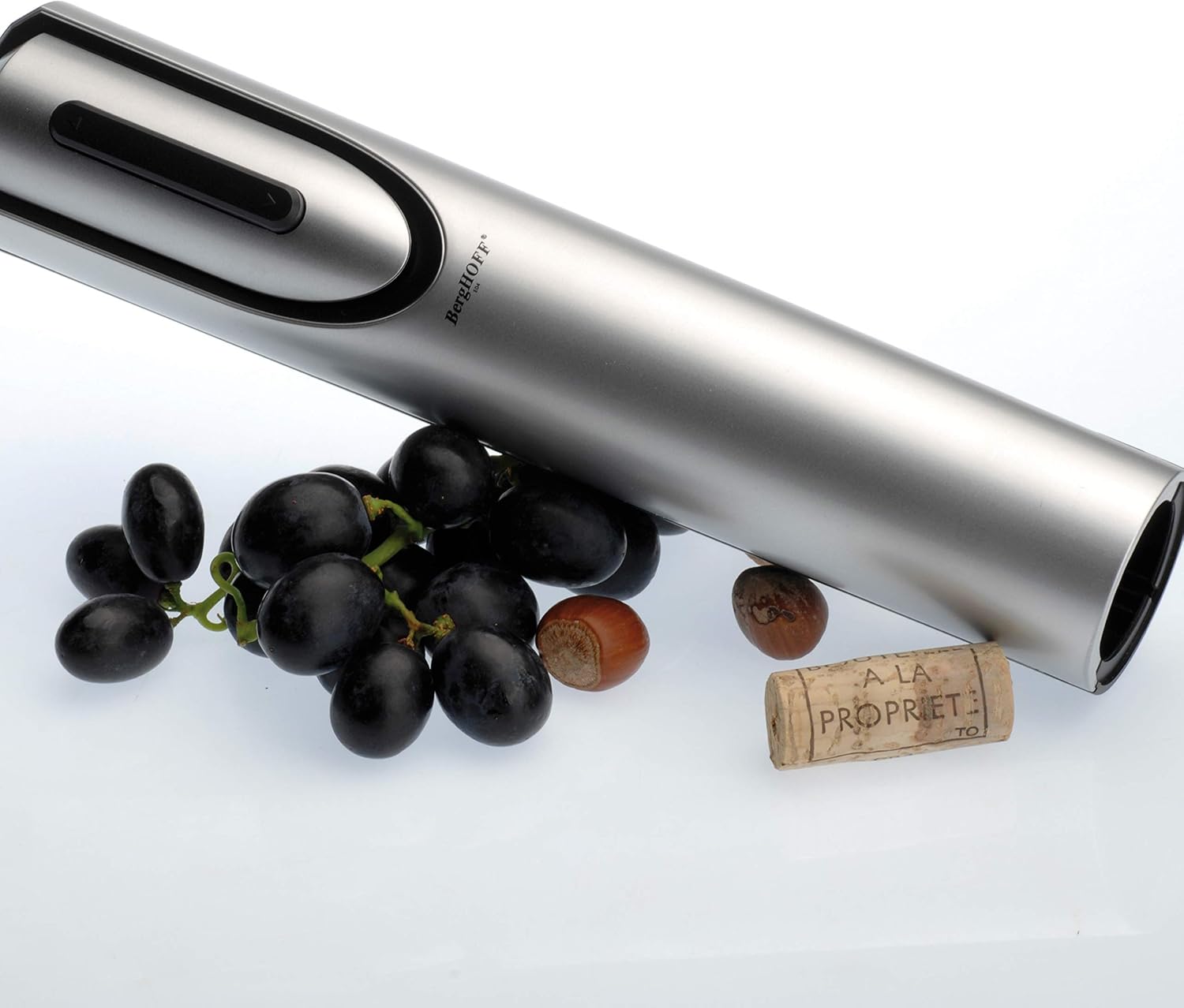 • Stainless steel Electric Corkscrew, foil cutter, charging base and power source: 7.5V DC 80mA. Ergonomic ABS handle.