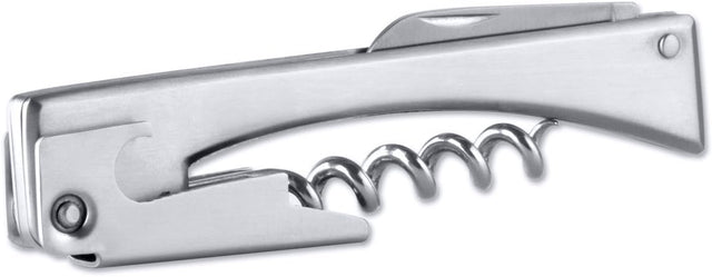 Essentials Wine Opener is simple but effective, this waiter's corkscrew helps you to open your bottles with a maximum of stability and comfort. Just cut the foil with the retractable knife, insert the corkscrew in the cork and pull the cork from the bottle, it’s easy as pie! This compact stainless-steel corkscrew easily fits in your kitchen drawer or picnic basket and can be used for both long and short corks. Elegant and easy-to-use with all of the tools you need. The cutter tool helps to remove any foil from the bottle before uncorking. Simply twist the corkscrew into the cork and pull. It is that easy! Whether you are hosting a dinner party or simply enjoying a glass of wine at home, this manual wine opener is the perfect accessory to have on hand.