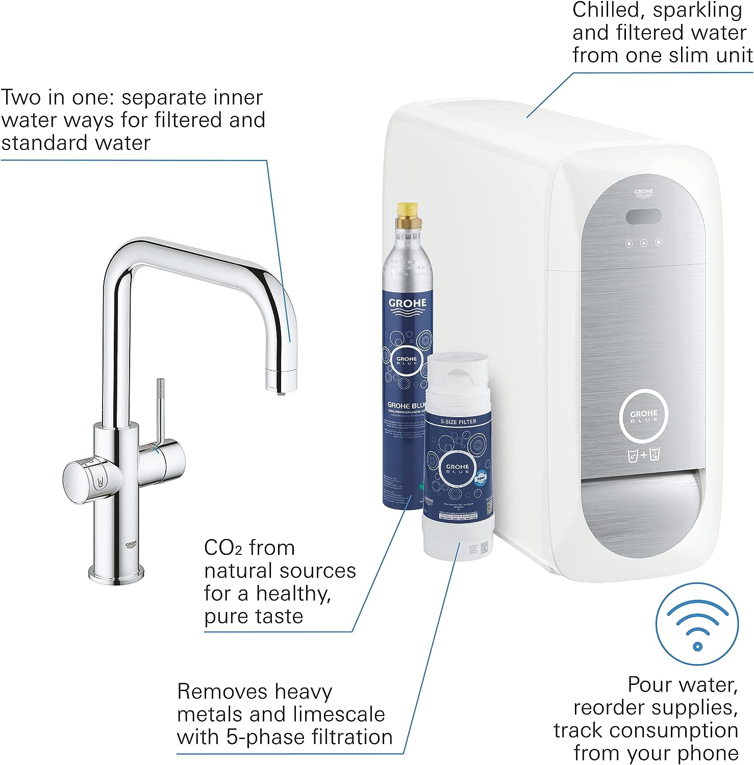 • Consisting of: Grohe Blue Home single-lever sink mixer with filter function