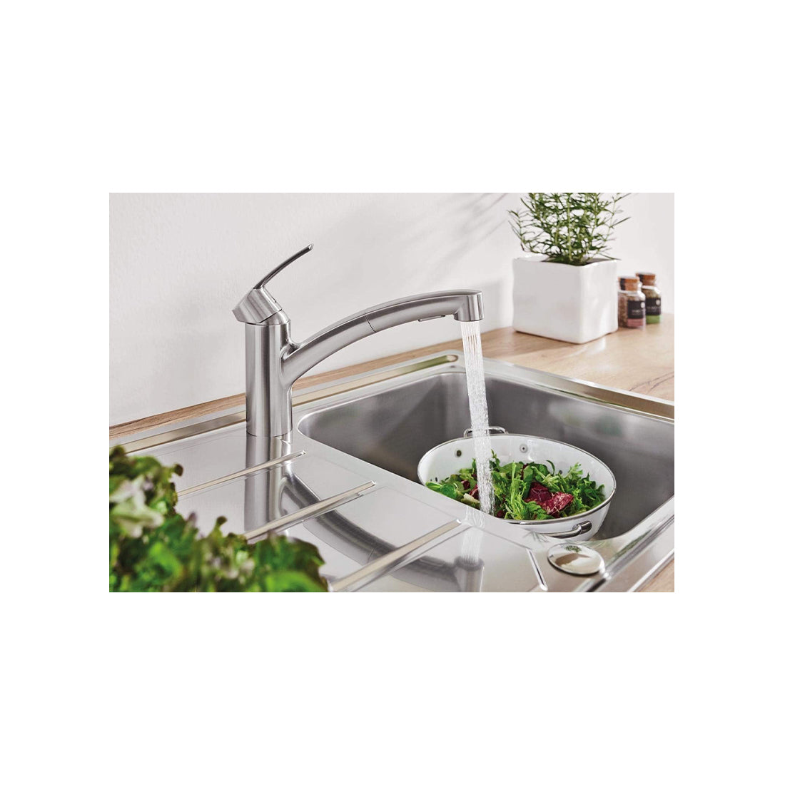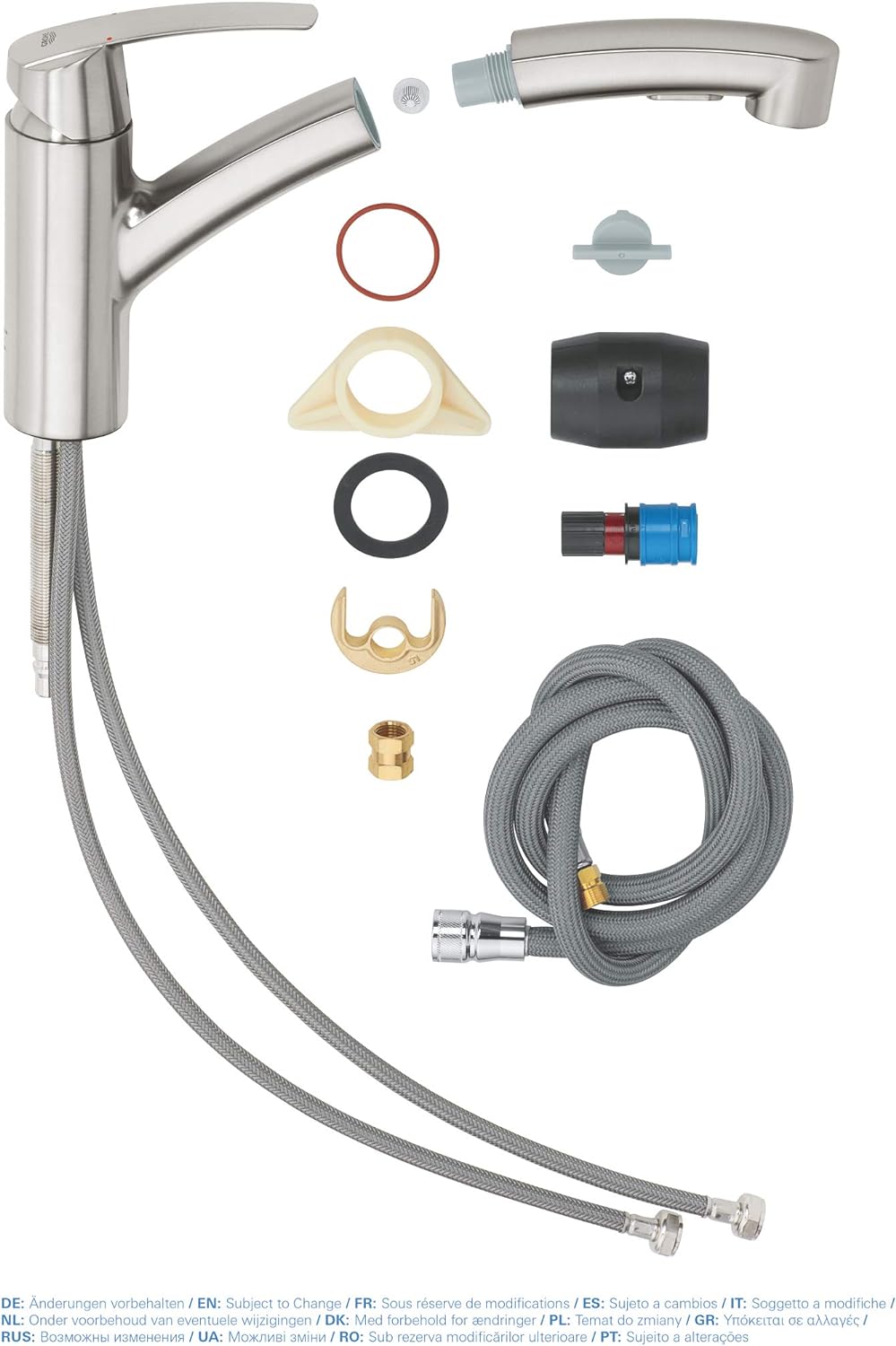 - GROHE Zero separated inner water ways - lead and nickel free pull-out dual spray - switches back and forth between regular flow and spray diverter: laminar spray/SpeedClean shower jet automatic return to laminar spray rapid installation system protected against backflow