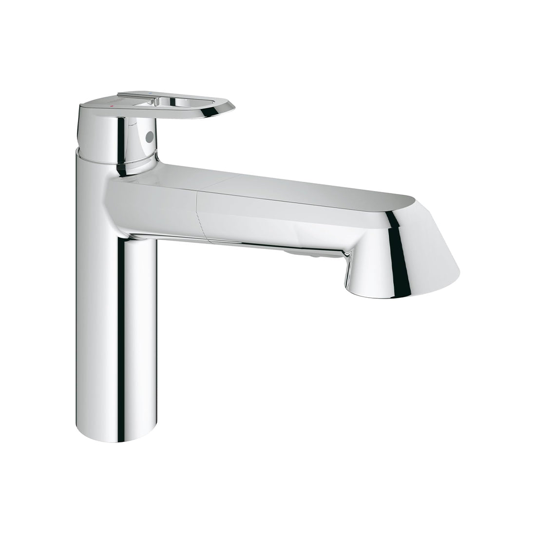 - GROHE EasyDock guarantees easy retraction and smooth docking back to the starting position pull-out dual spray - switches back and forth between regular flow and spray diverter: mousseur/SpeedClean shower jet automatic return to mousseur flexible connection hoses