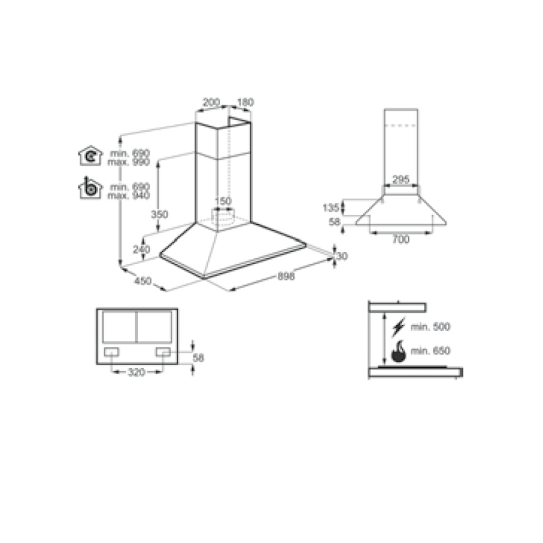 - Air extraction capacity (high/low): 420 / 235 m³/h