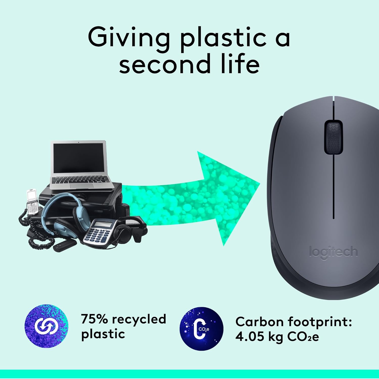 Plastic parts in M170 include certified post-consumer recycled plastic (minimum 59% for Black, Blue/Black, Red/Black, Black/Grey, Grey/Black, Off-white and 38% for Rose and Blue grey (4))