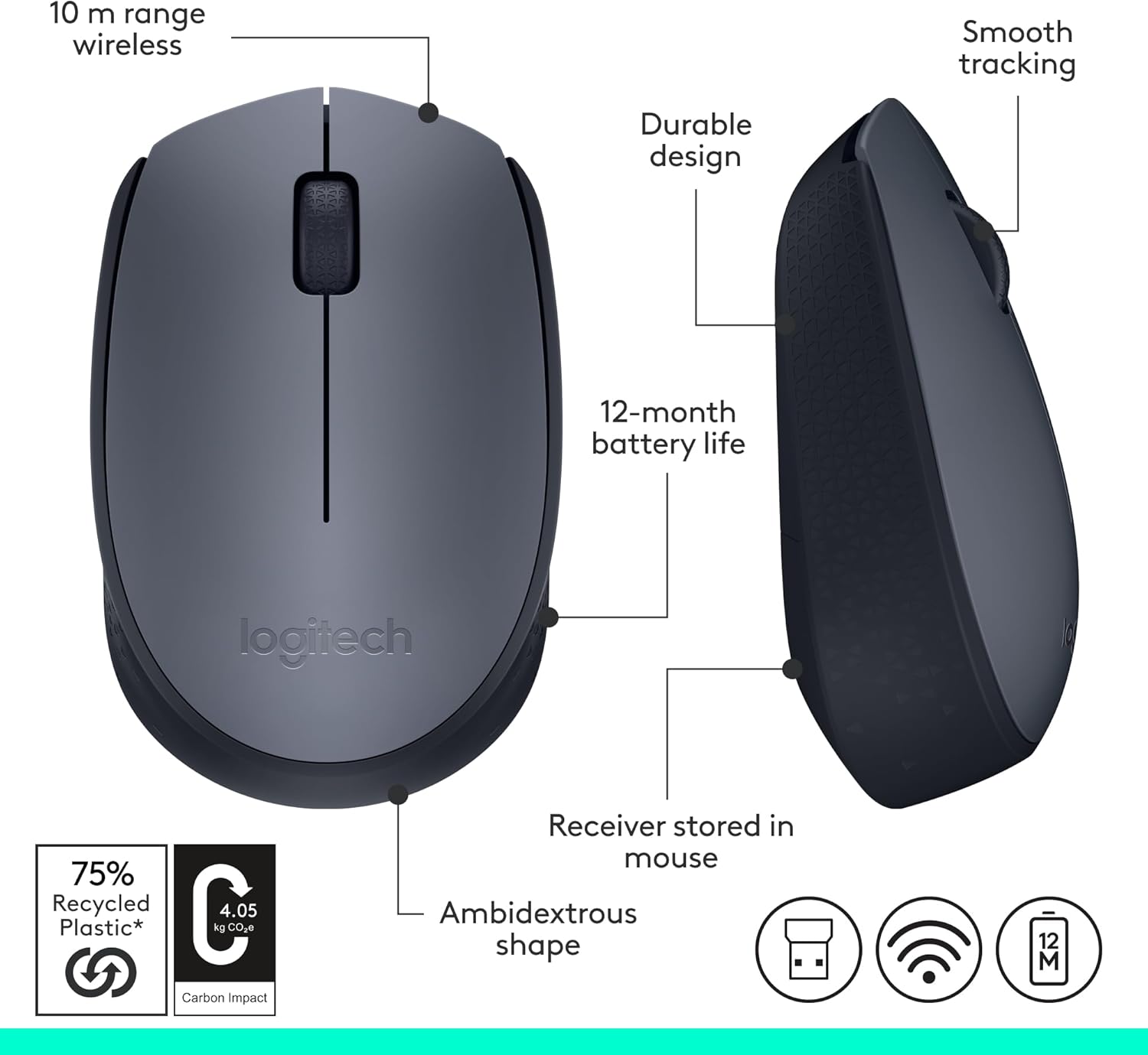 LOGITECH M170 Grey Wireless Mouse 910-004642