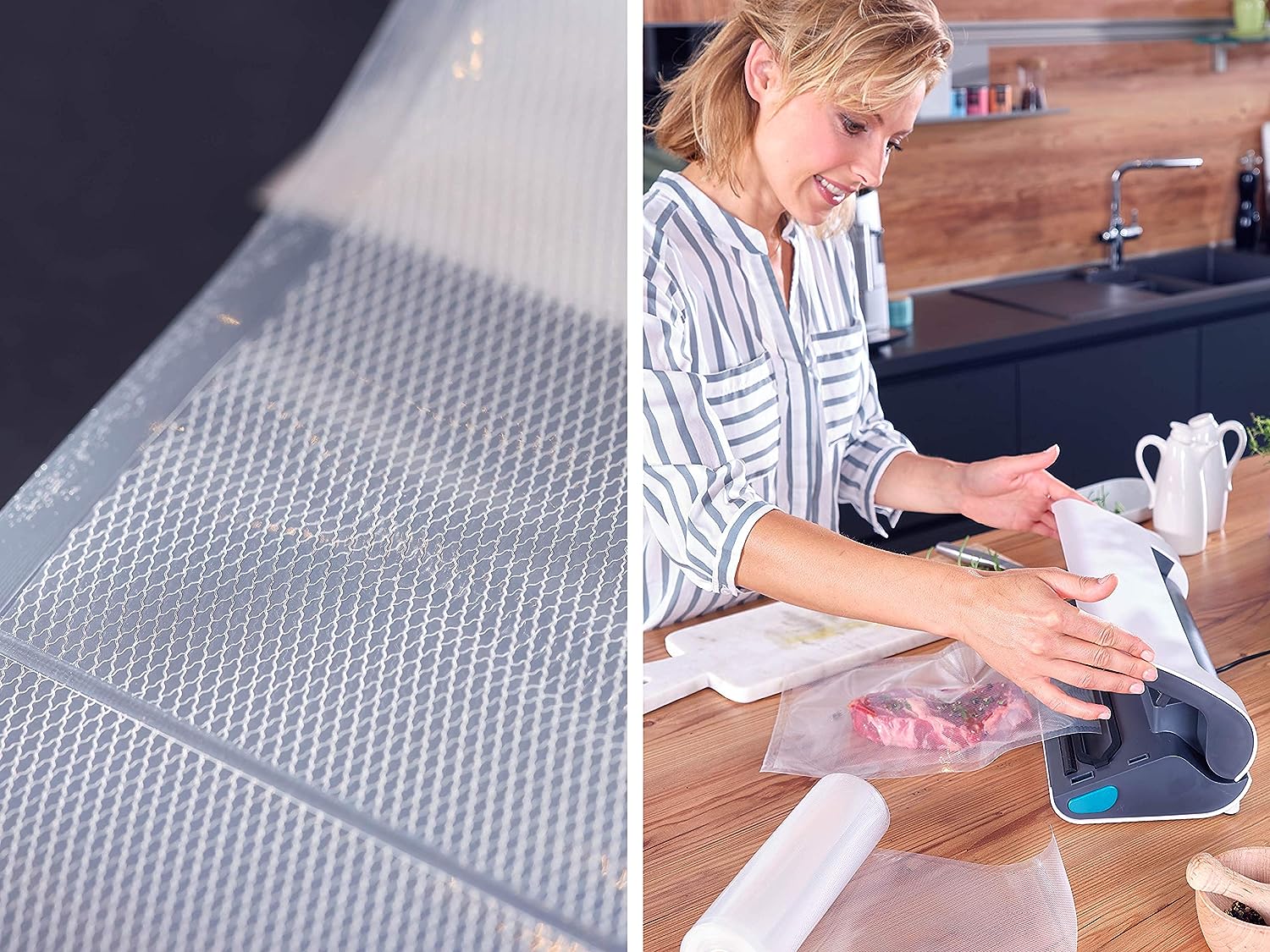 Fresher for longer: in combination with a vacuum sealer device, food can be preserved up to 5x longer, without preservatives. Vitamins, nutrients and aromas are retained
