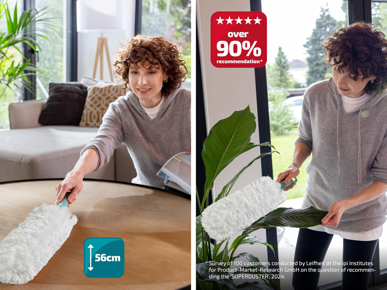 - Thanks to the 360° microfibre fabric, the duster Superduster XL reliably absorbs and holds a lot of dust, hair and allergens