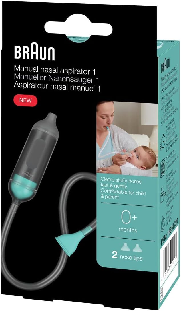 Braun Manual Nasal Aspirator – Quickly and Gently Clear Stuffed Infant Noses - Toddler and Baby Nasal Aspirator with Two Nose Tips