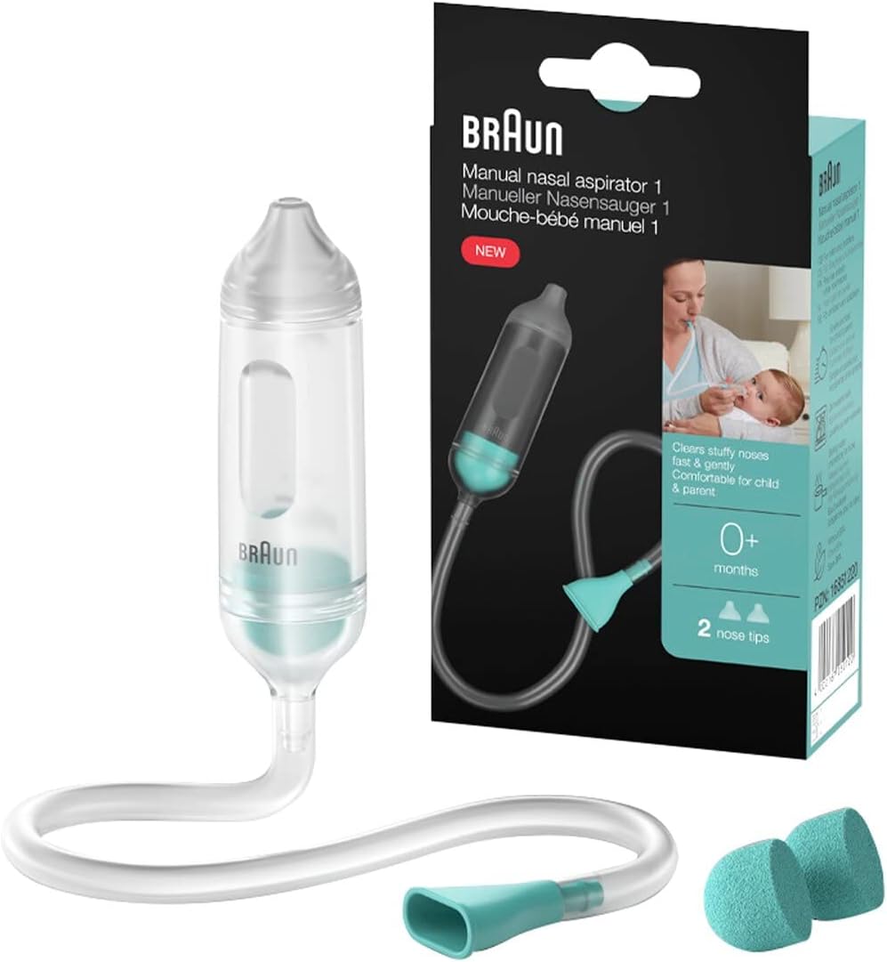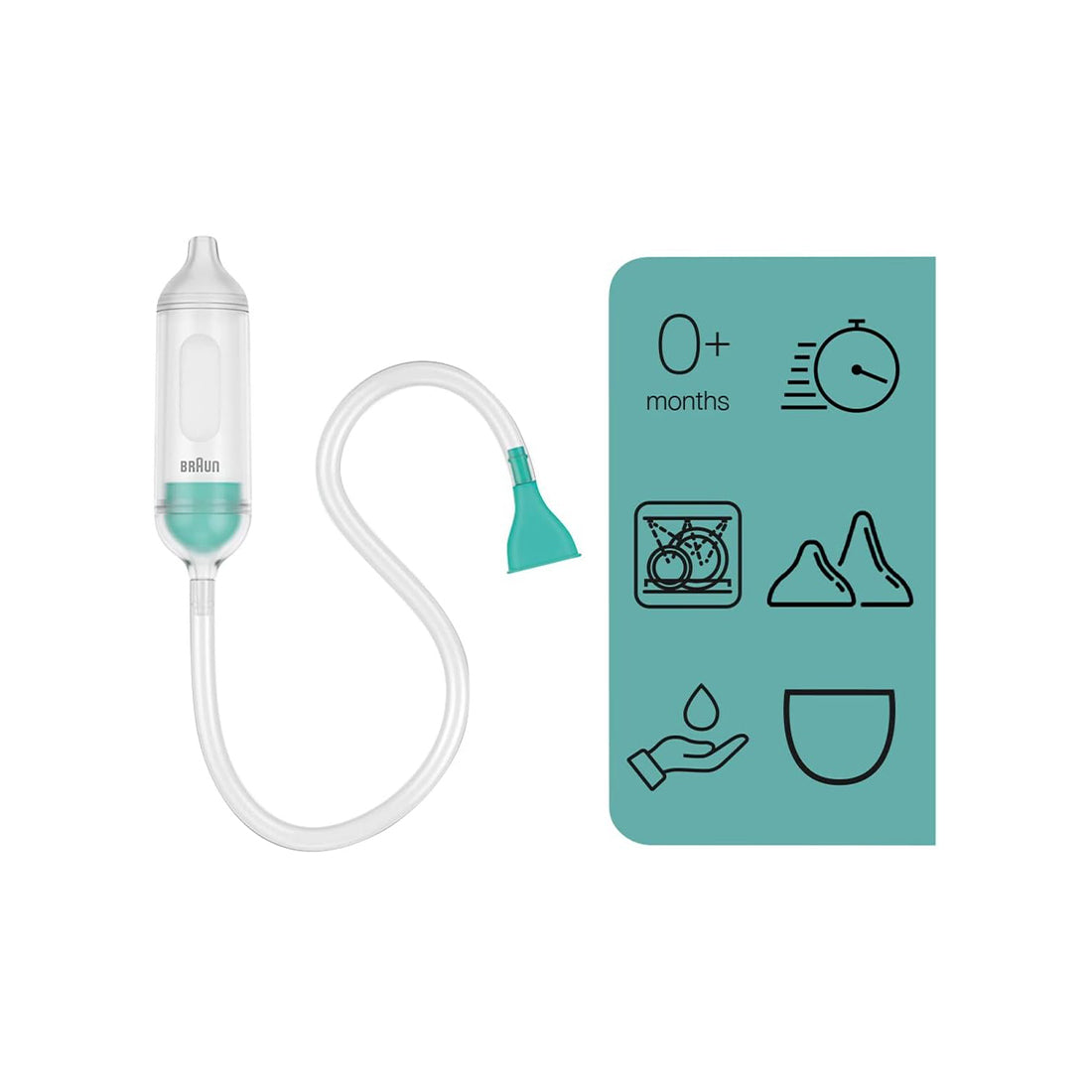 Braun Manual Nasal Aspirator – Quickly and Gently Clear Stuffed Infant Noses - Toddler and Baby Nasal Aspirator with Two Nose Tips