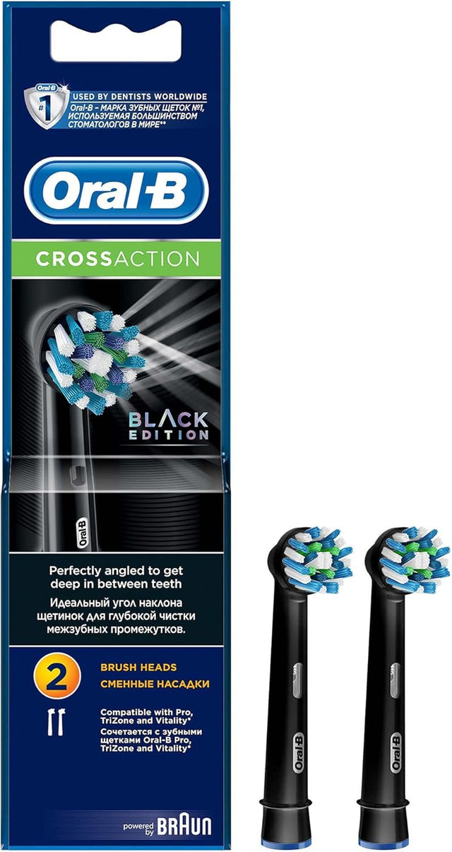 ORAL-B CrossAction Set of 2 Black Replacement Brush Heads EB50BRB