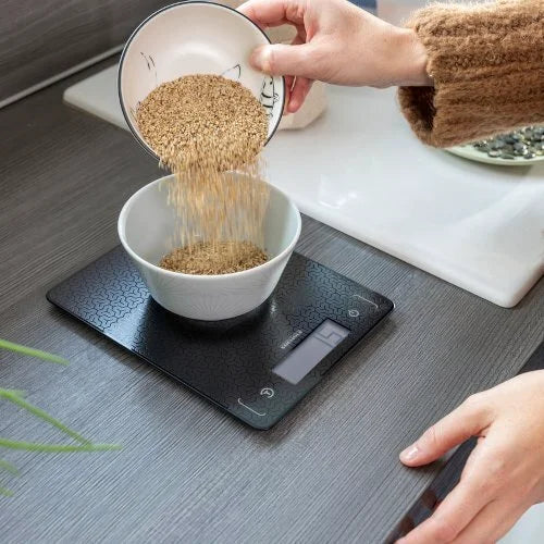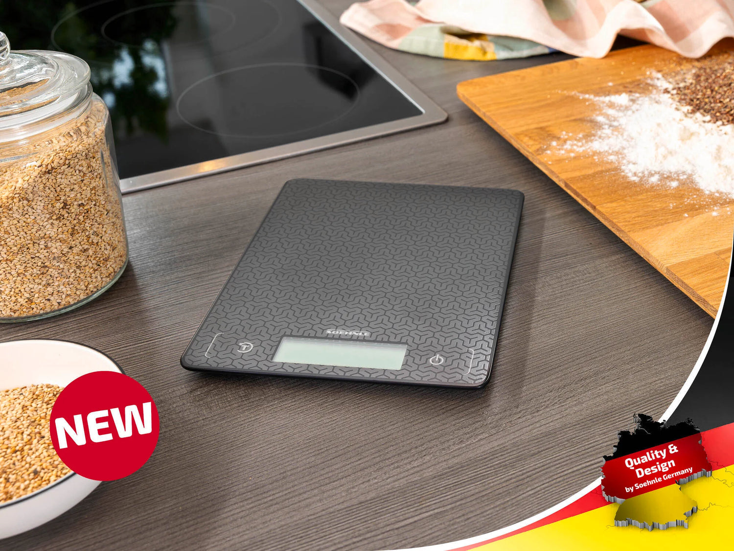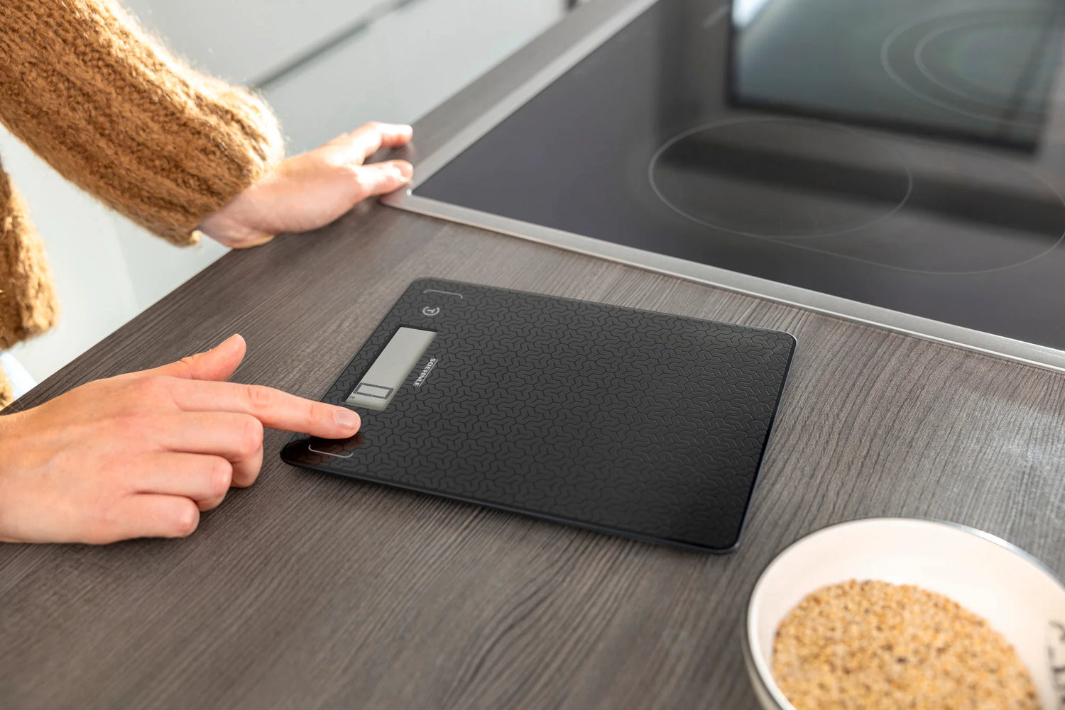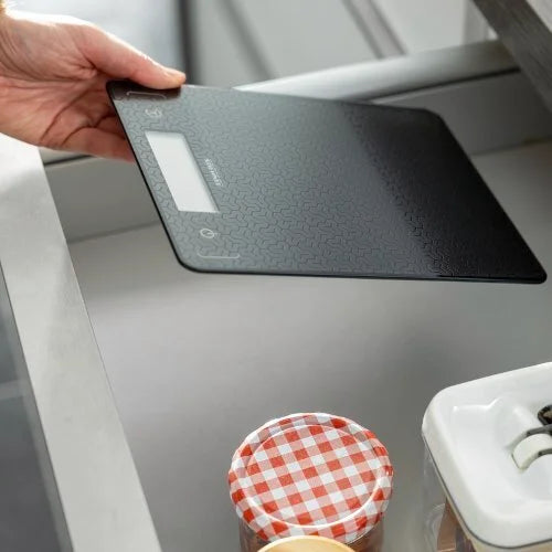 - Page Comfort Mosaic kitchen scale has an ultra-thin construction of 9.9 mm and a large weighing surface