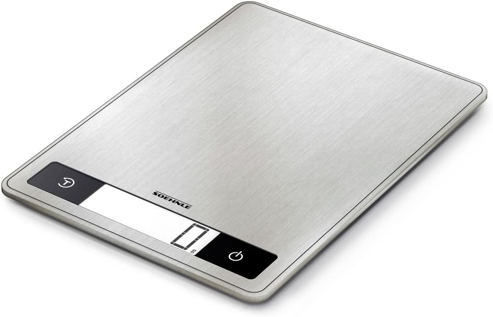 - Practical and compact - the flat design of this kitchen food scale saves storage space. Its broad, practical weighing surface is suitable for large containers or parcels