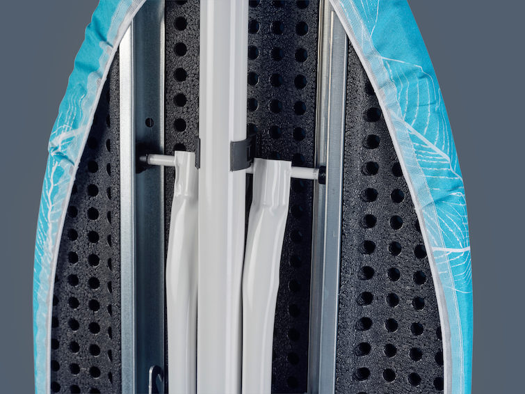 • Ultra-light ironing surface made from special plastic, measuring 120 x 38 cm