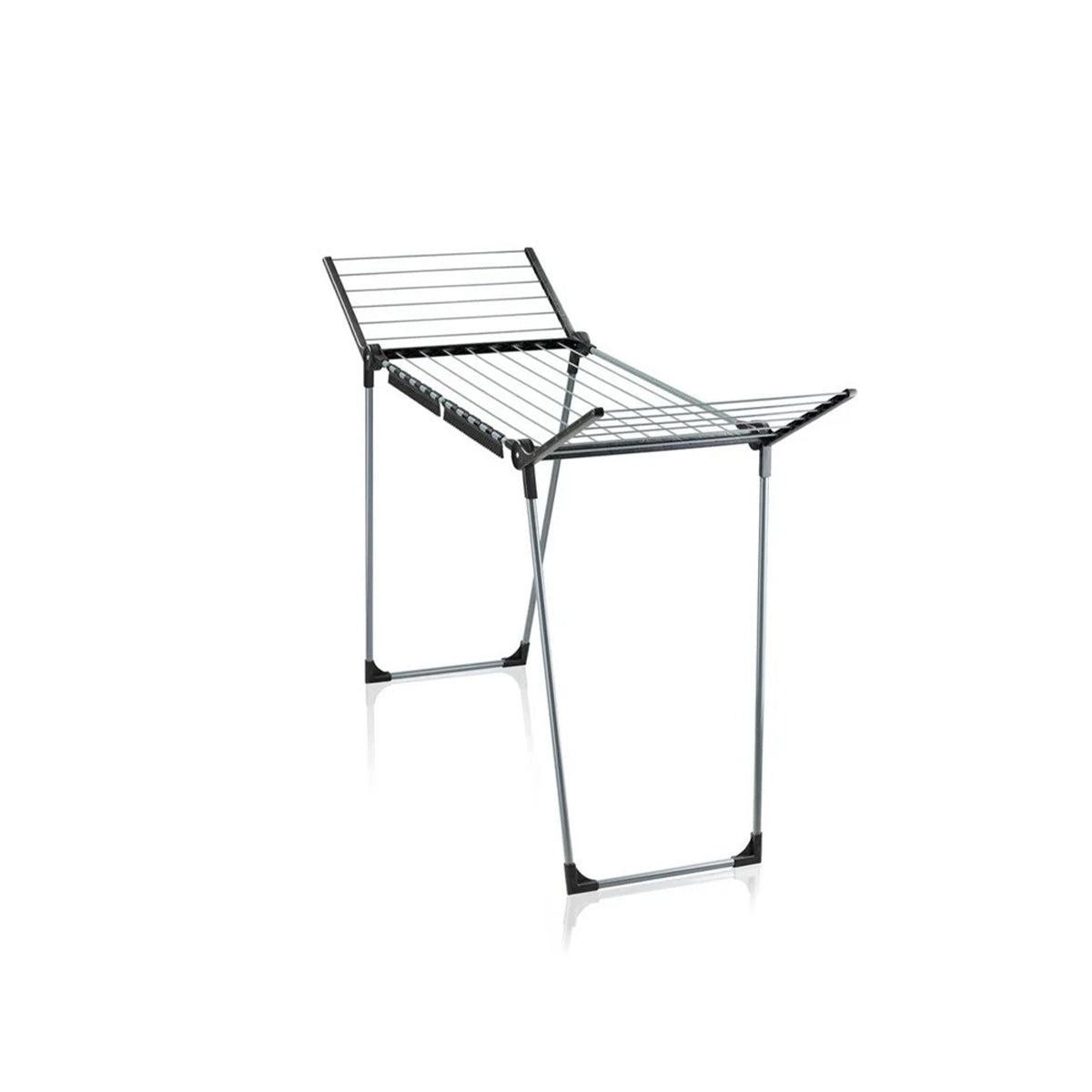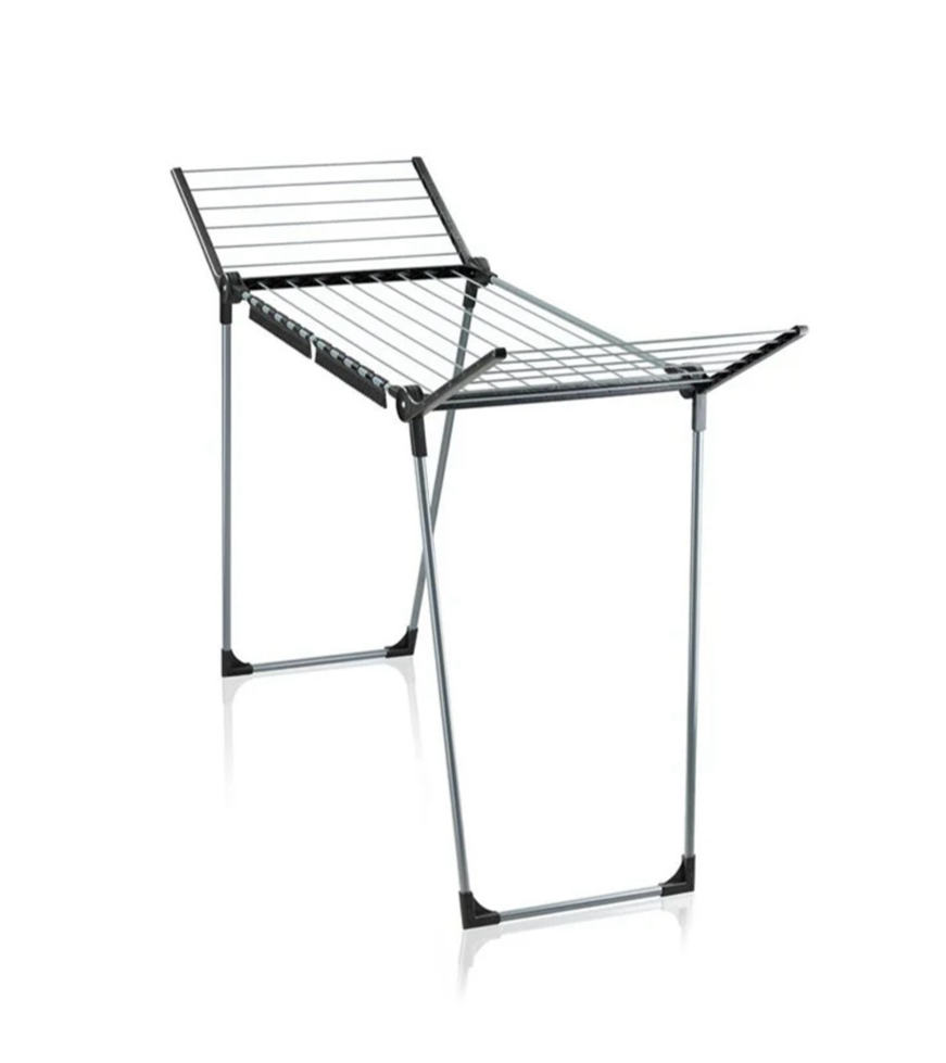 - With the wings, this flat stowable laundry rack is ideal for drying long laundry.