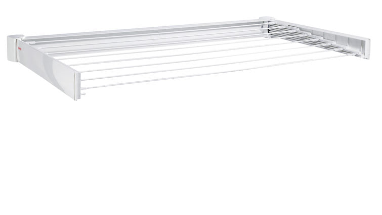 - This wall mounted clothes horse is made from a sturdy plastic and metal, making it suitable for use in wet environments, such as bathrooms