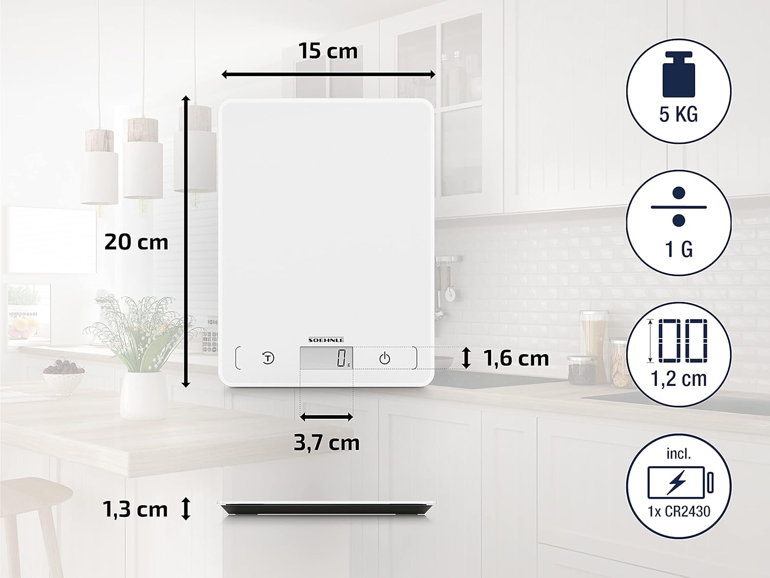 • Product details - Soehnle Page Profi 100 Digital Scale, weighs up to 15 kg, accuracy 1 g, bright XXL display, HOLD function 10 sec, incl. batteries.